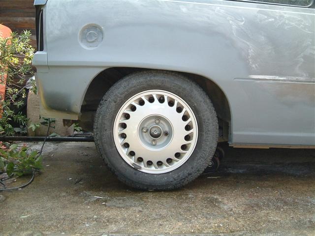 Some shots now of suspension ride height, for comparison mainly. The rears are believed to be standard, but I've fitted the Koni shocks and AVO springs to the front, which lowered it a fair bit, but not too much by any means.